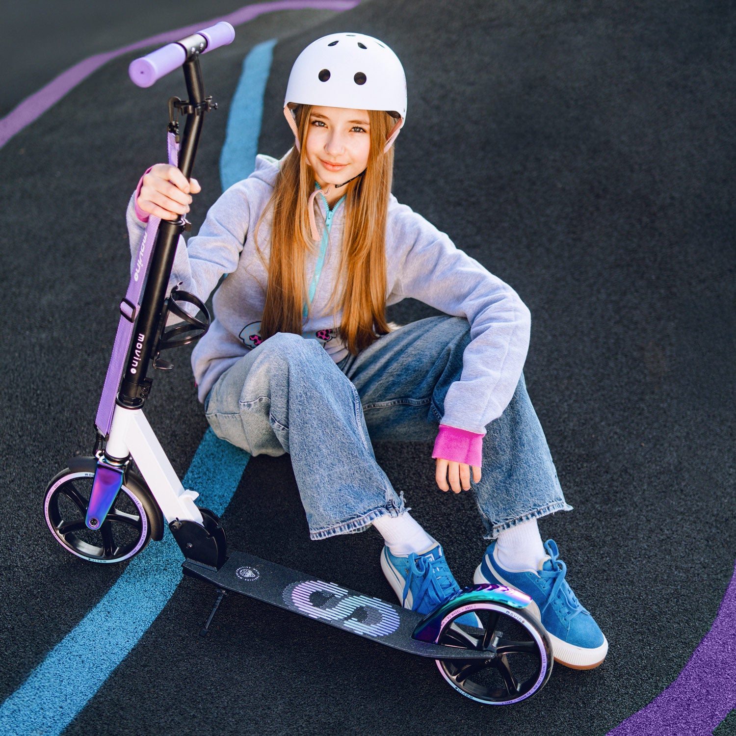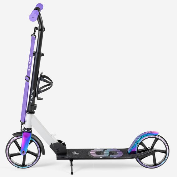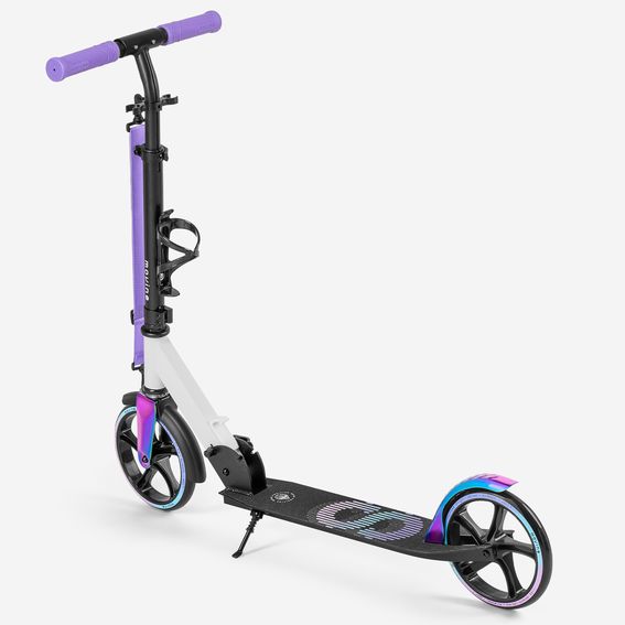 The Infinity Rainbow is a scooter you can always have at hand. The mechanism allows you to fold it up quickly, and the practical carrying strap lets you sling it over your shoulder like a bag. It weighs only 3.5 kg, so you can easily take it to school, public transport, or outings with friends.