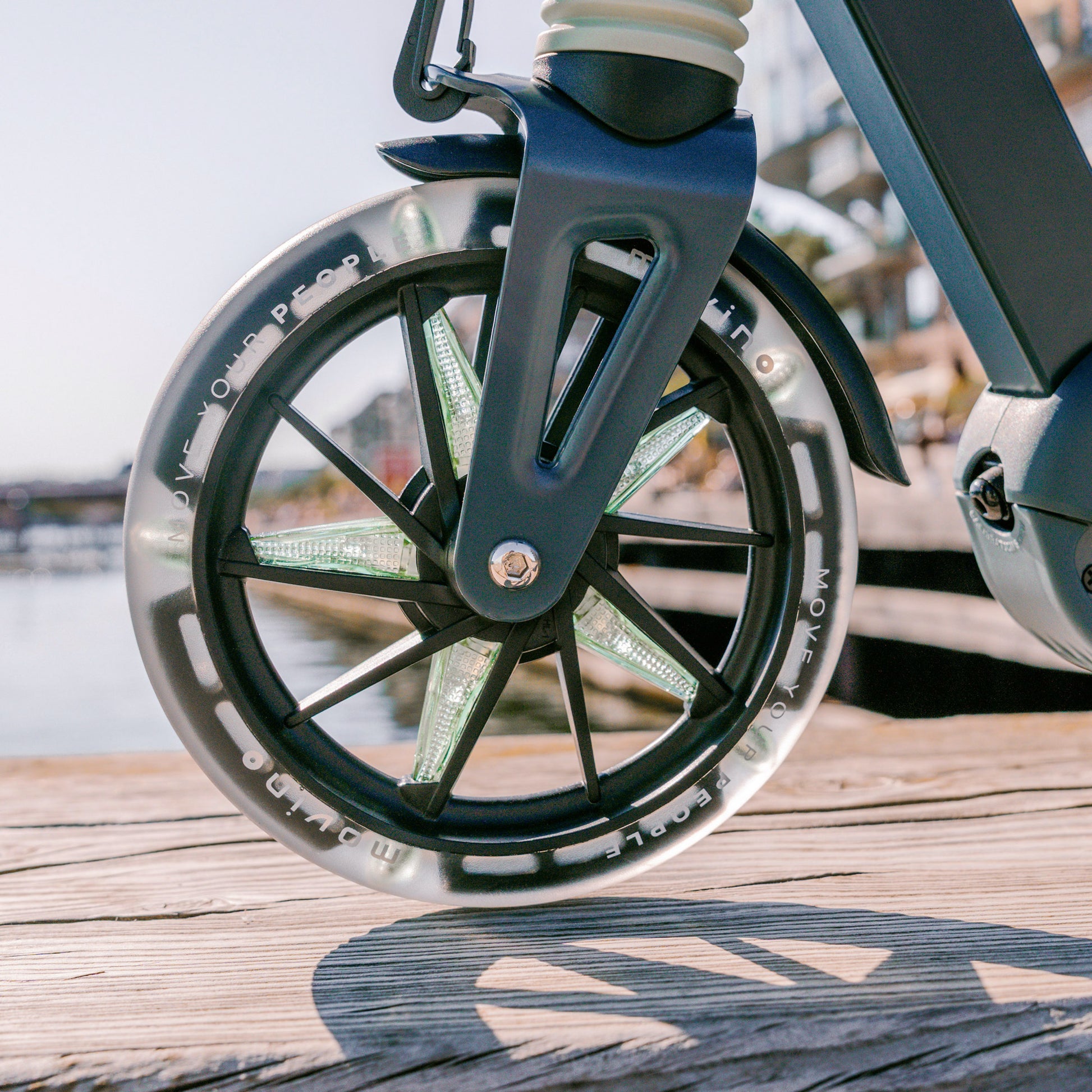 Der Movino City Light ist ein Roller für diejenigen, die auffallen wollen: LEDs, ein Stoßdämpfer und eine durchdachte Konstruktion garantieren eine stilvolle, reibungslose Fahrt jeden Tag. Eine praktische Aussparung für... Mehr anzeigen