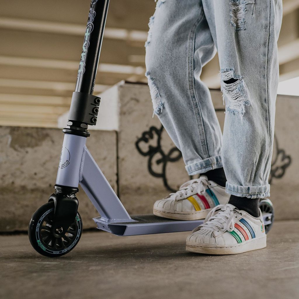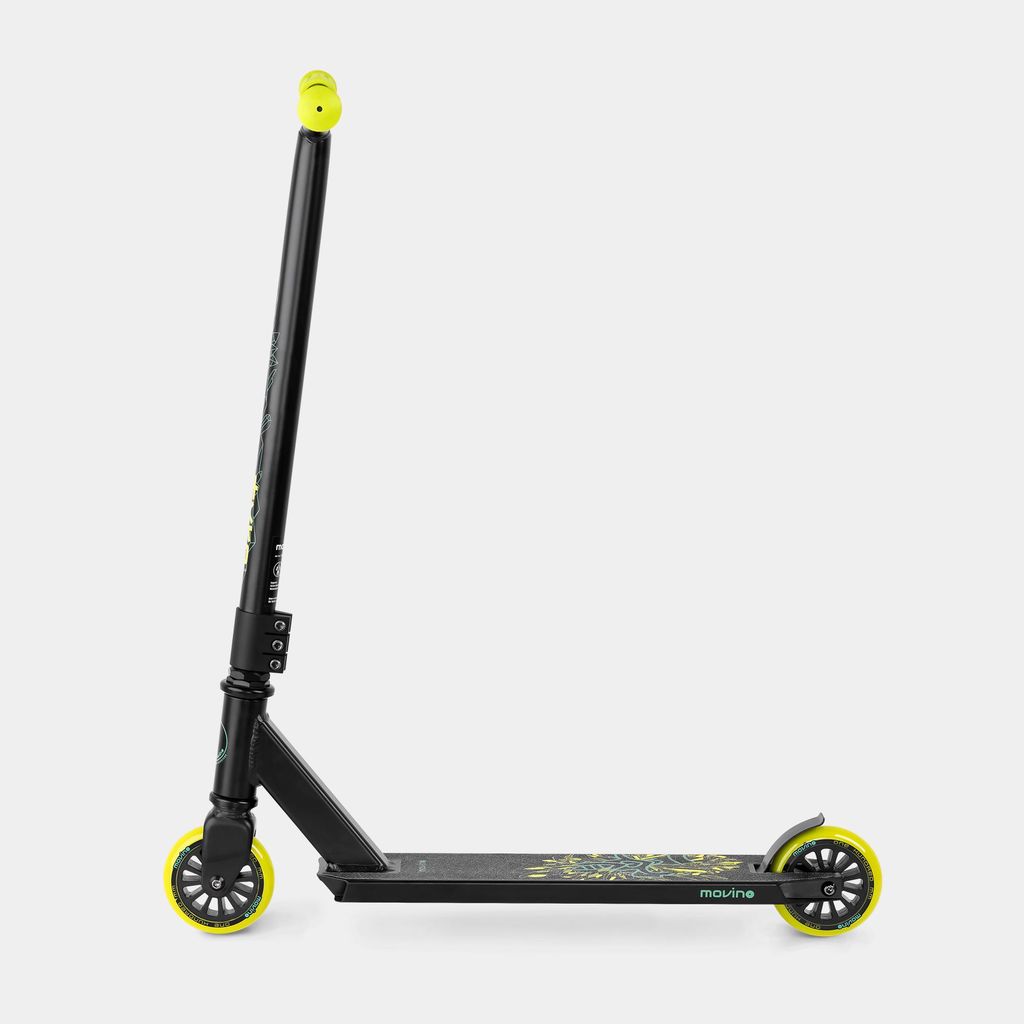 Der erste Stuntscooter für Kinder soll vielseitig sein, an die Größe angepasst und – woran wir bei Movino fest glauben – hochwertig sein! Das Modell Tyro haben wir mit den Nylon-Core-Rollen mit einem Durchmesser von 100mm, einem Kompressionssystem mit Gewinde und einem Alu-Deck ausgestattet – und der gesamte Scooter ist nicht schwerer als 2,9 kg! Wir bieten hier einen leichten und robusten Stuntscooter an, der einem Anfänger die Welt der Skateparks und Streetelemente eröffnen wird.
